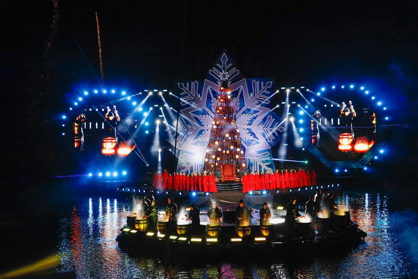 Um dos espetáculos mais grandiosos do Natal Luz. O lago do Centro de Eventos Serra Park se transforma em um palco flutuante para o show que combina luzes e efeitos pirotécnicos, além de músicas interpretadas por vozes renomadas.